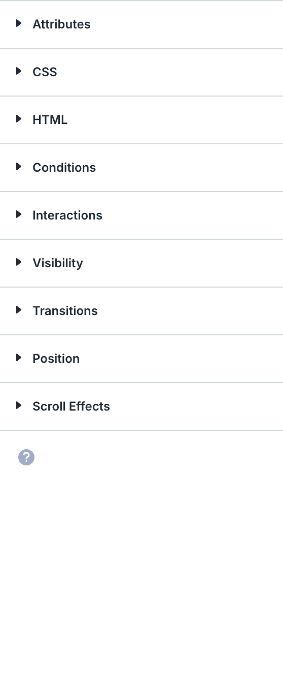 | Attributes | CSS ID, classes, custom HTML attributes |