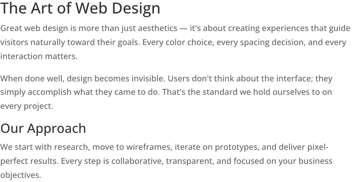 Long-Form Content Sections — Use the Text module for article-style content within Divi layouts. Set a max-width of 700-800px and center the module to create an optimal reading experience with comfortable line lengths.